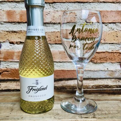 VINO Y COPA DE CRISTAL PERSONALIZADA