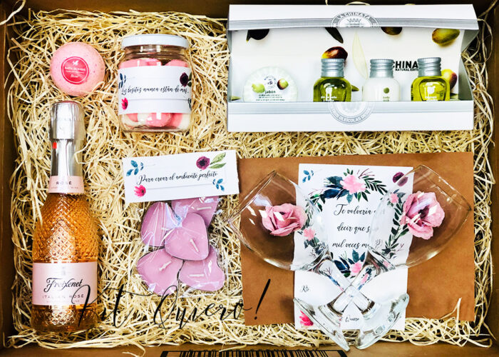 Que mejor forma de celebrar este aniversario que con una preciosa botella de Prosecco espumoso y afrutado, en copas de cristal que podrás personalizar, mientras os ilumináis a la luz de las velas y disfrutáis de un delicioso baño de sales y un sinfín de besitos de fresa de gominola … incluye un estupendo set de baño natural edition.
