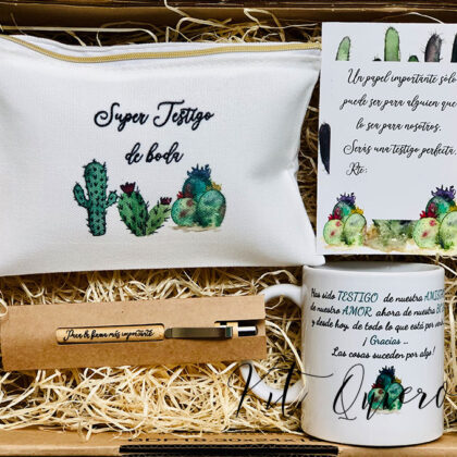 Todo presentado con un bonito diseño de packaging que podrás utilizar después del evento para guardar todo lo que recuerde a ese gran día, y un tarjetón con la cita: