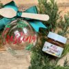 En el interior encontrareis un botecito de mininutella con diseño navideño en la etiqueta y cucharita de madera anudada con una lazada.