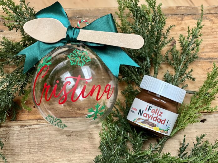 BOLA NAVIDAD TRANSPARENTE PERSONALIZADA CON MINI-NUTELLA