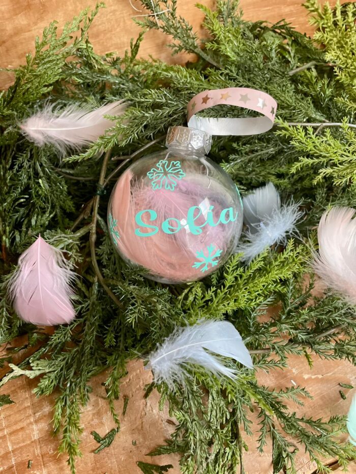 BOLA NAVIDEÑA DE PLUMAS PERSONALIZADA