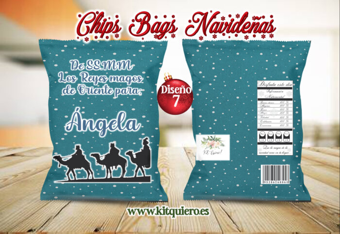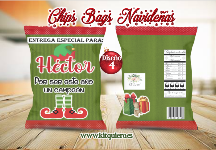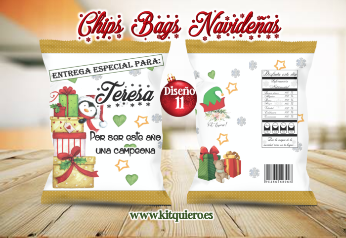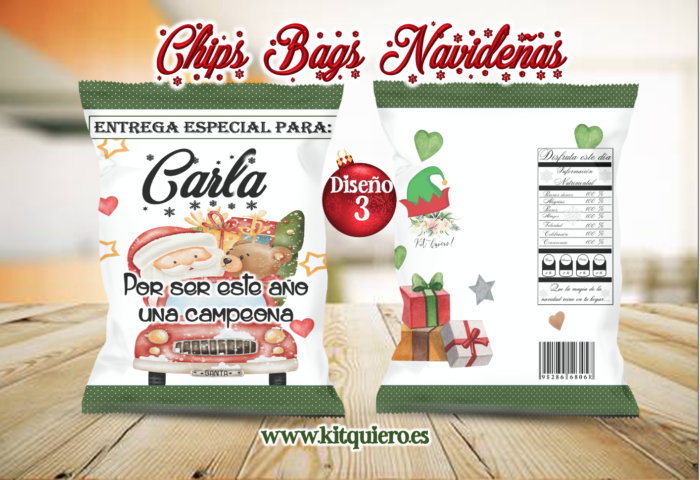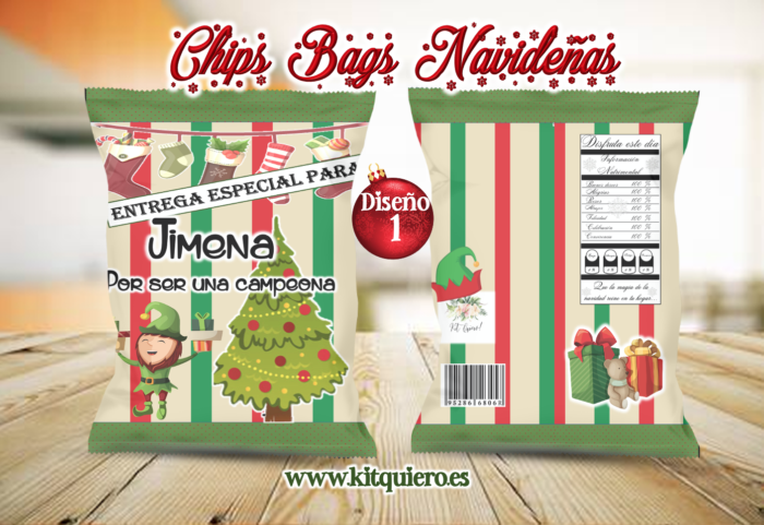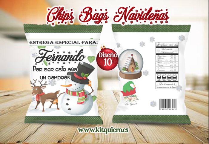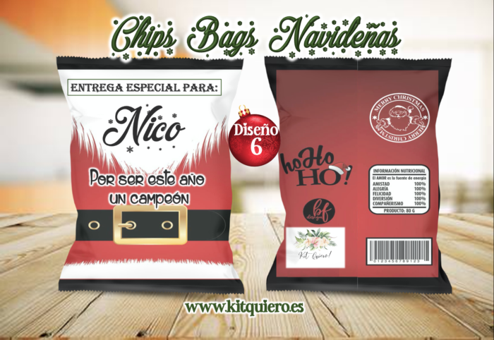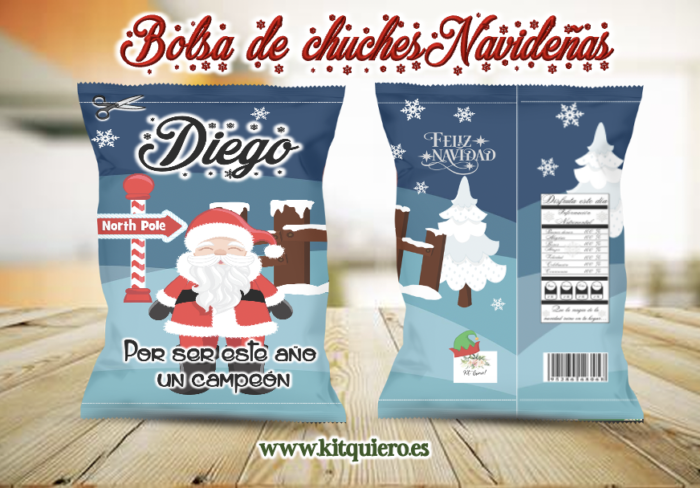 Bolsa de papel glossy con diseño navideño y personalización de nombre .