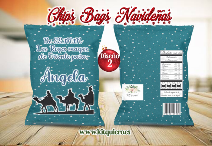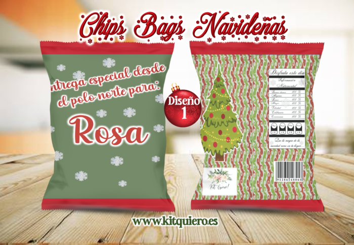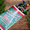 Bolsa de papel glossy con diseño navideño y personalización de nombre .