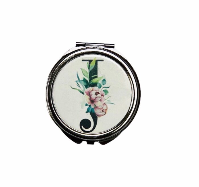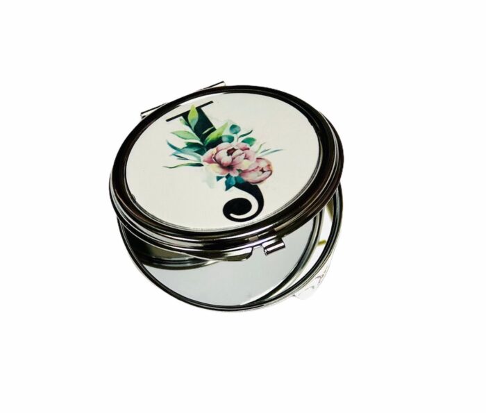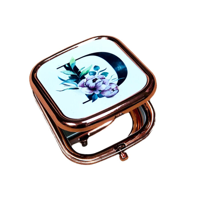 Espejo de bolso personalizable con la inicial del nombre que queráis .Diseño de la inicial hecho con efecto acuarela. Medidas 6 x 7,5 cm modelo rectangular color oro rosa , 6,3 x 6,7 modelo redondo plateado.
