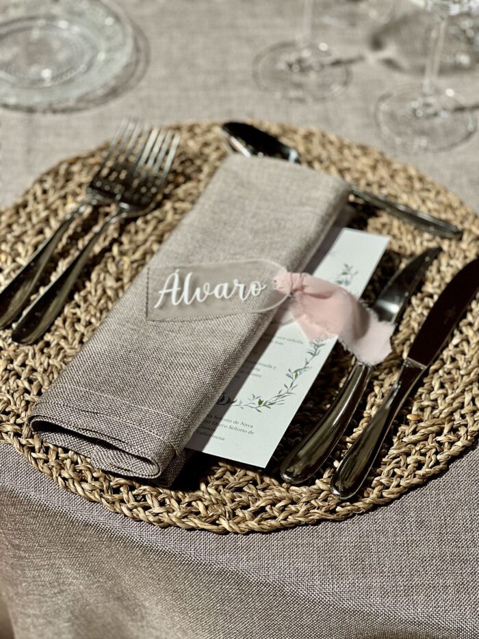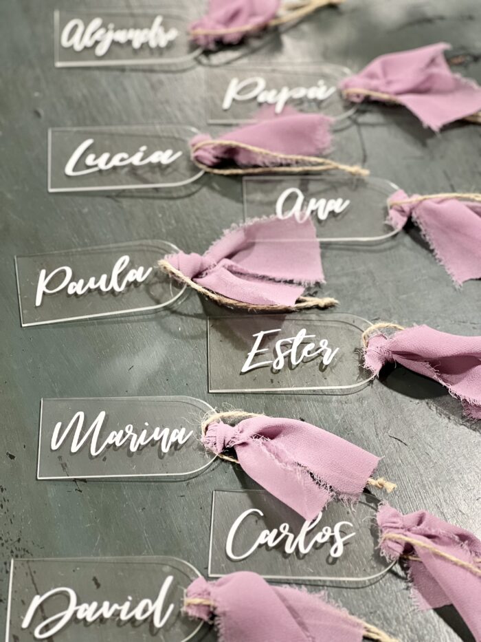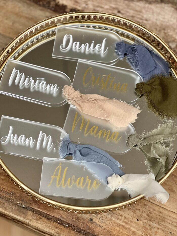 Marcasitios de metacrilato transparentes con fondo efecto esmerilado.
