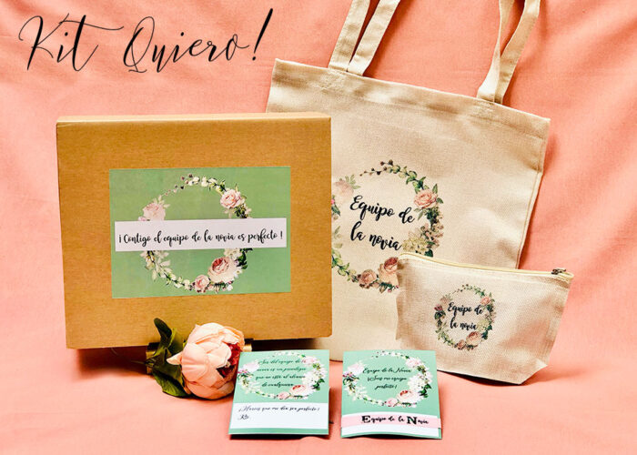 ¡¡Pertenecer al equipo de la novia es todo un honor!! Que mejor manera que lucir una bonita pulsera del «equipo de la novia» con la que os haréis una foto todas juntas que siempre tendréis de recuerdo, un precioso neceser y bolsa de lino para que vayáis todas iguales, con el texto » Equipo de la novia».