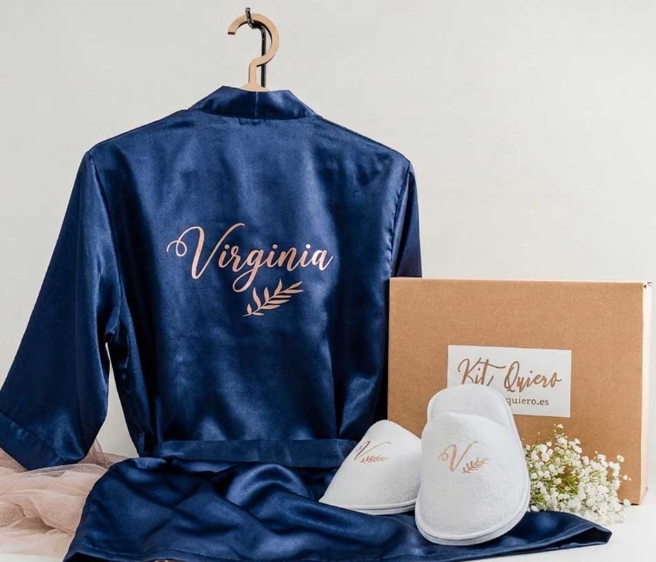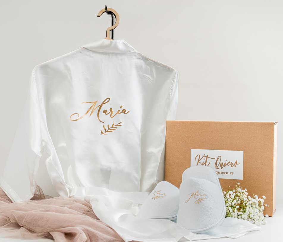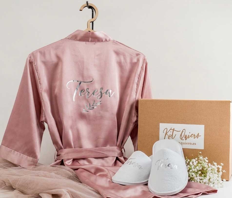 Kit para novia con bata y pantuflas. Hay un instante en toda boda que es casi tan especial como la ceremonia: ese rato previo, cuando todo empieza a tomar forma.