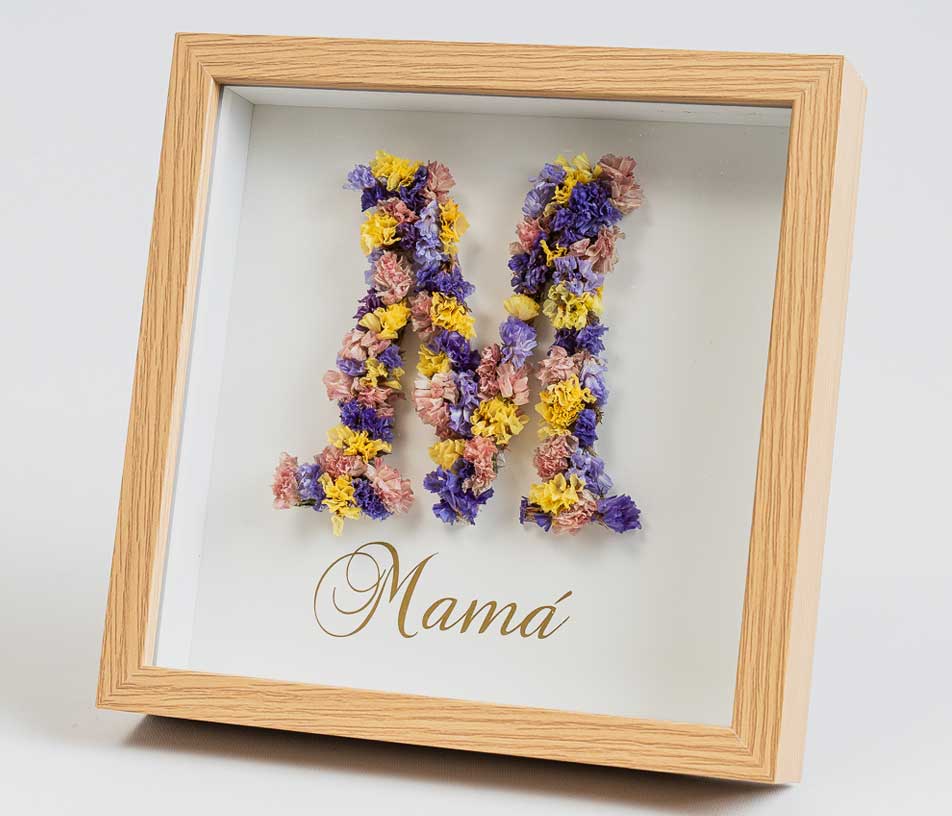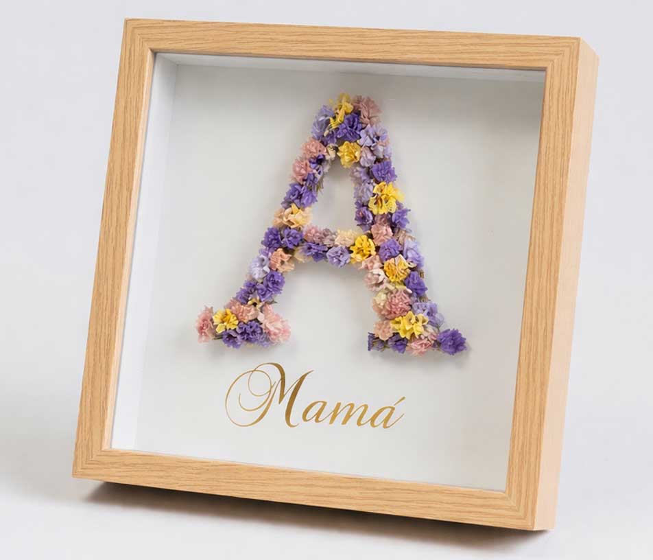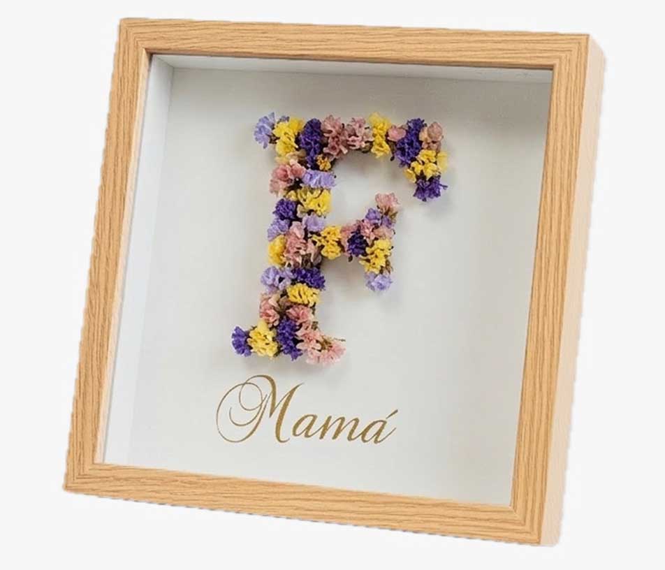 Este cuadro con inicial de flores preservadas personalizado es el regalo perfecto para quienes buscan un detalle único.